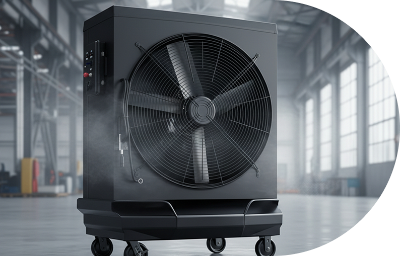 - Utilisation flexibleFaciles à déplacer (sur roulettes), nos appareils sont idéaux pour rafraîchir des postes de travail localisés, des grands volumes, les dépôts, les entrepôts, ou même les locaux ouverts sur l’extérieur.